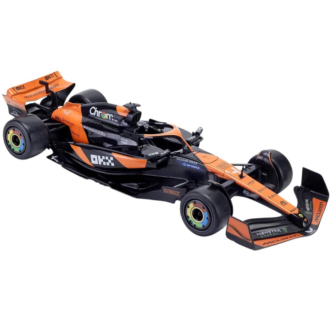 Įsivaizduokite save prie starto linijos su mažąja 1:14 mastelio “MCL38” versija — oficialiai licencijuotas pastarosios kartos “McLaren” F1 bolido modelis, skirtas žaidimams ir kolekcijai. Su 2.4 GHz valdymo pultu, itin tikslia apdaila ir realiomis F1 spalvomis, šis automobilis suteikia gerą balansą tarp žaislo ir modelio.