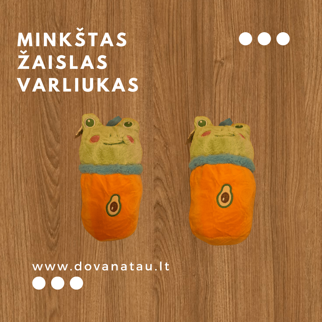 Minkštas žaislas Varliukas. Dydis: 24x12x8 cm. Skirta vaikams nuo 3 metų.